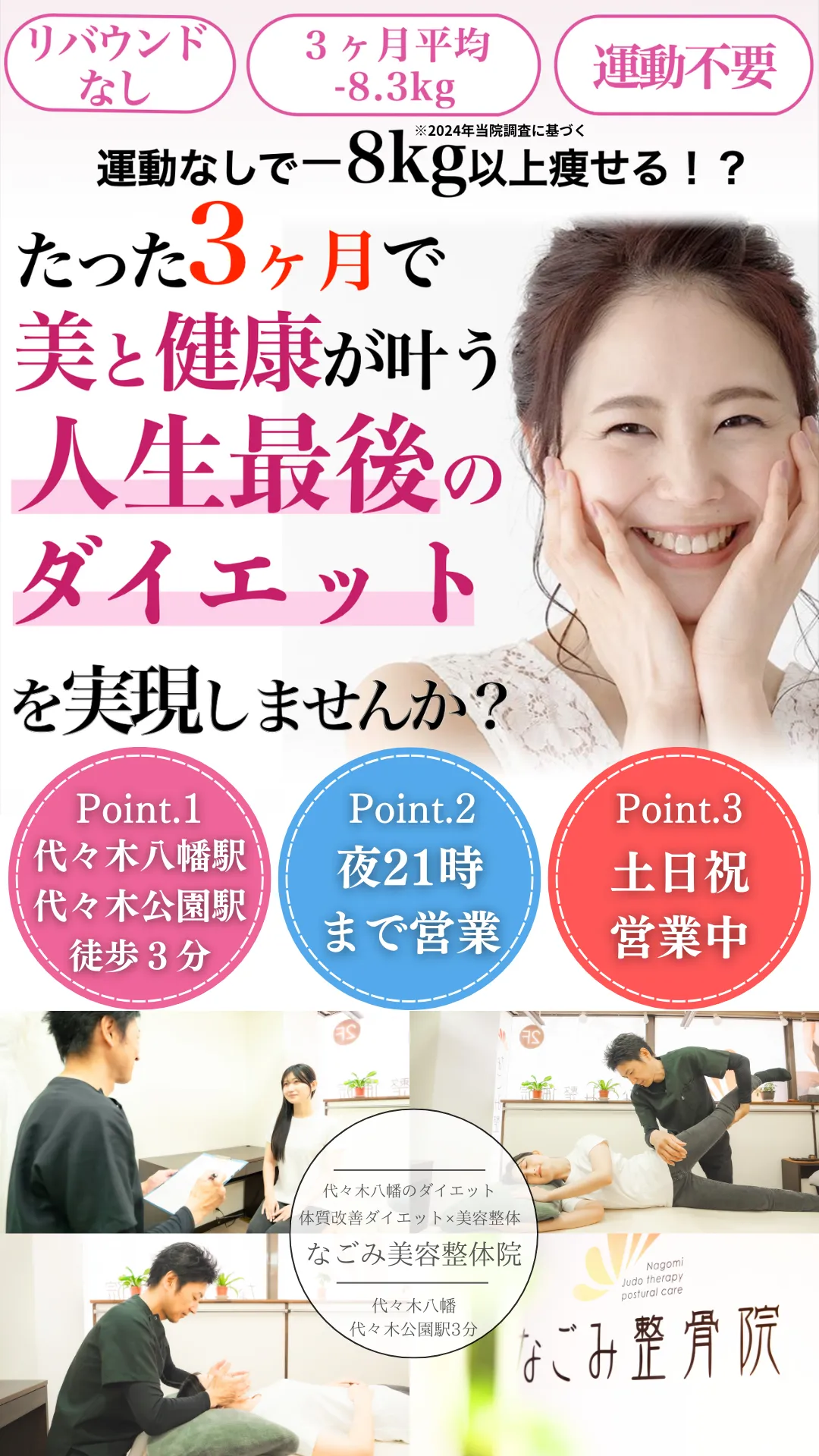 ぜひ、勇気を出してお気軽に代々木八幡なごみ美容整体院にお越しください。