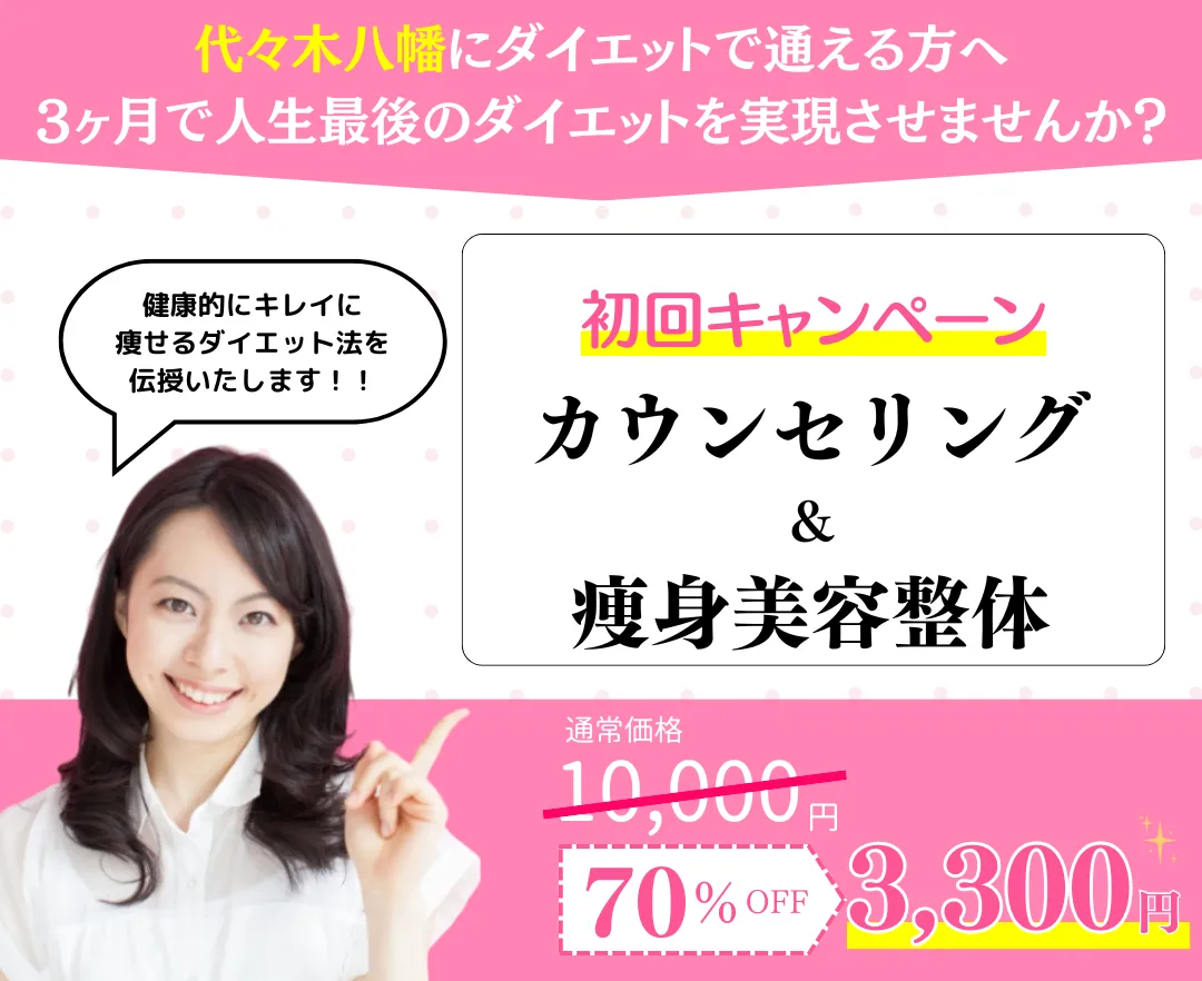 しかし、私のダイエットの効果を最大限引き出すためには絶対に必要な施術になります。さらに、私の痩身美容整体を受けることによって、姿勢が良くなり、見た目がキレイになることはもちろん、その他の体の不調の改善も同時に可能となります。
